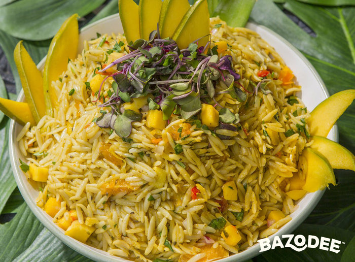 - Boil Orzo in water seasoned with water and oil, approximately 8 minutes